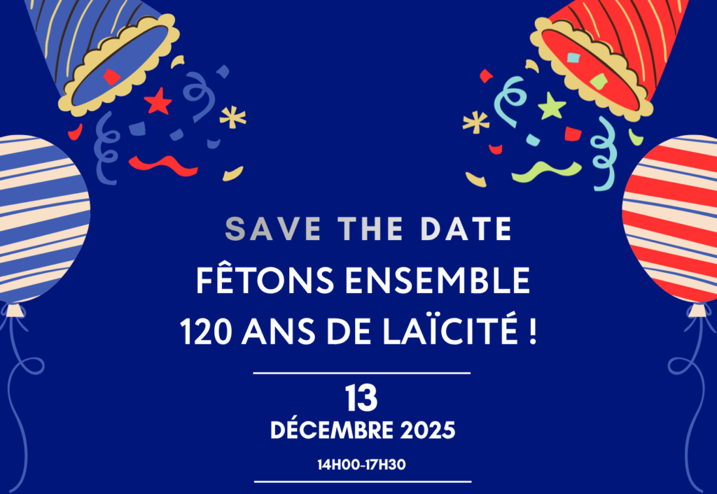 La FOL93, la FCPE93 et la LDH93 vous invitent chaleureusement à partager un moment convivial pour célébrer les 120 ans de la laïcité. Venez échanger, découvrir et fêter ensemble !